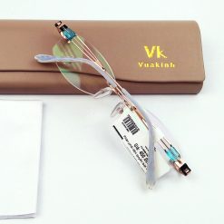 Gọng kính cận không viền gắn đá lục bảo VK-1
