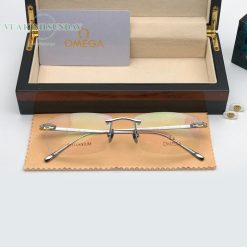 Gọng kính cận khoan không viền titanium mạ vàng 18k omega